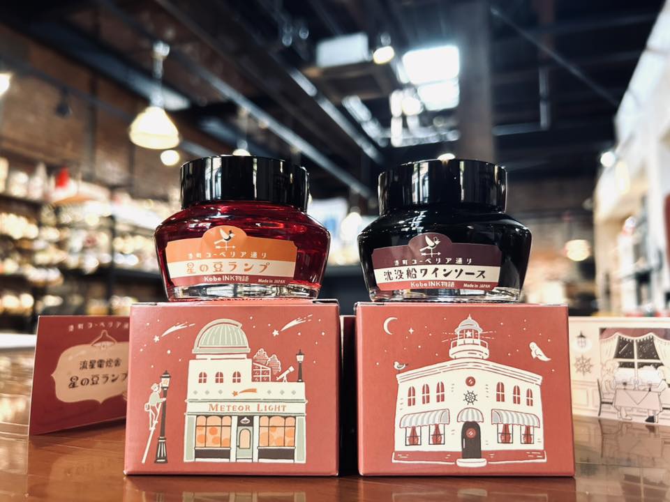 どこかにあるかもしれない架空の港町「コーベリア通り」をテーマにどこかにあって欲しい店をモチーフにインク色を創色しました。
