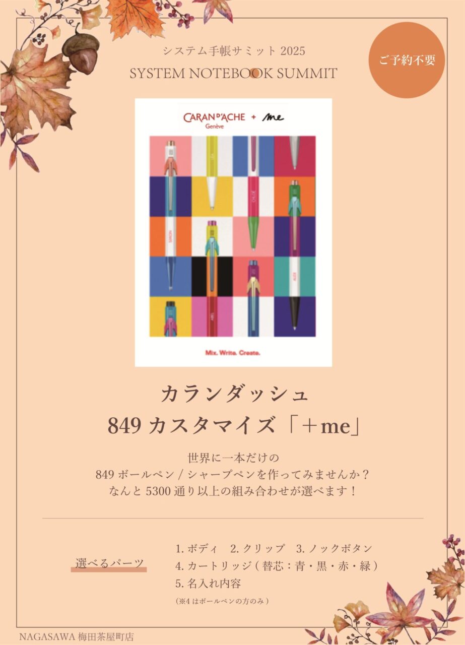カランダッシュの大人気モデル「849」のパーツカラーを選び、自分だけのペンを作れるイベントです!