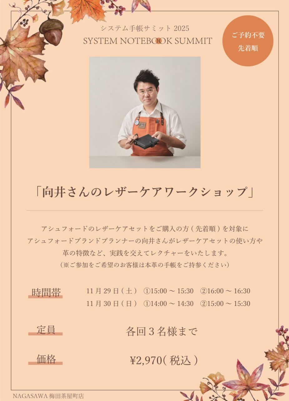 (※ご参加をご希望のお客様は本革の手帳をご持参ください)