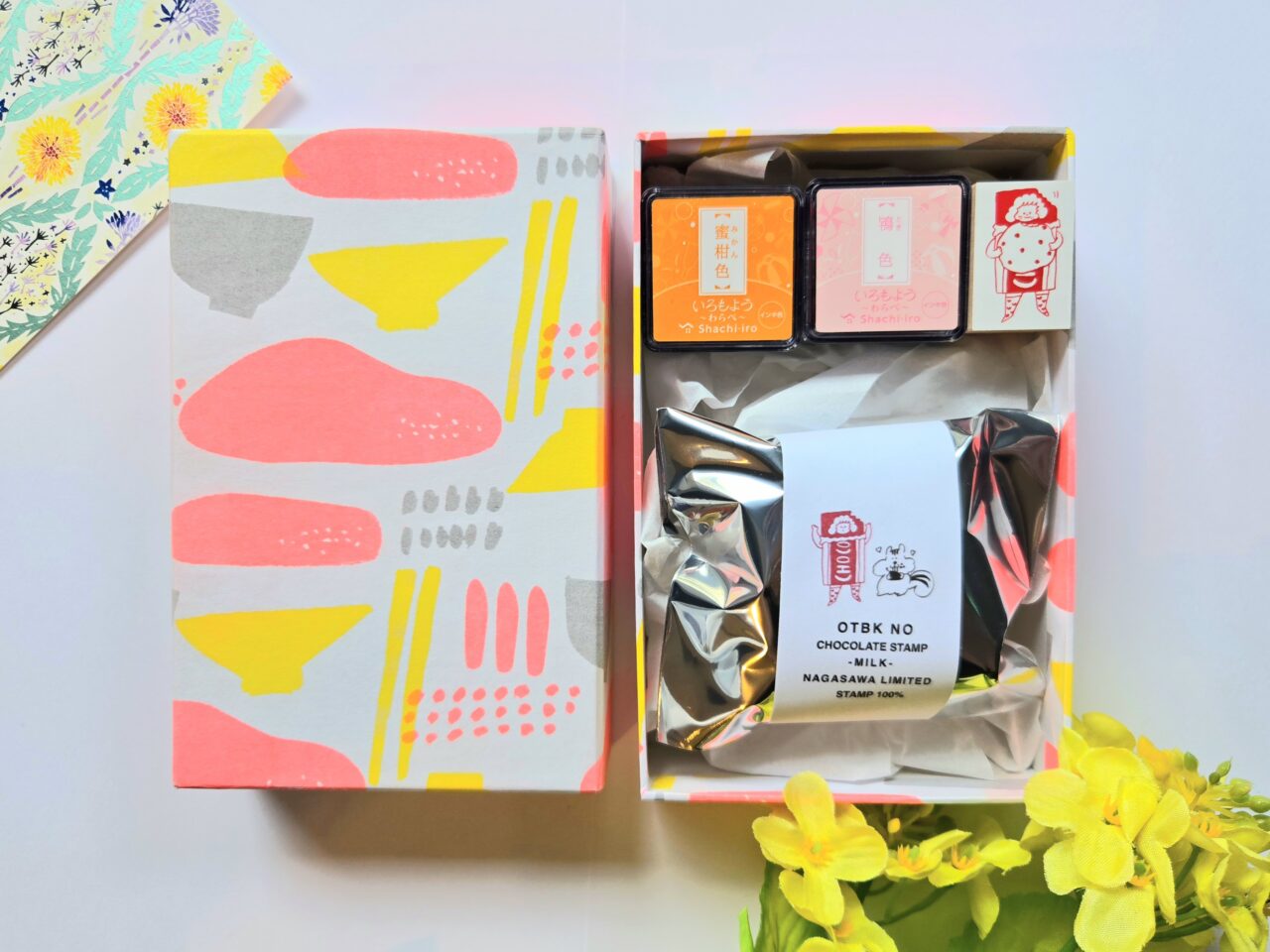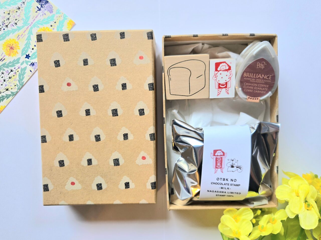 スタンプやインクパッドの収納にピッタリな、つつみ屋工房さんの「めぐり箱」とスタンプの限定セットをご用意しました。
