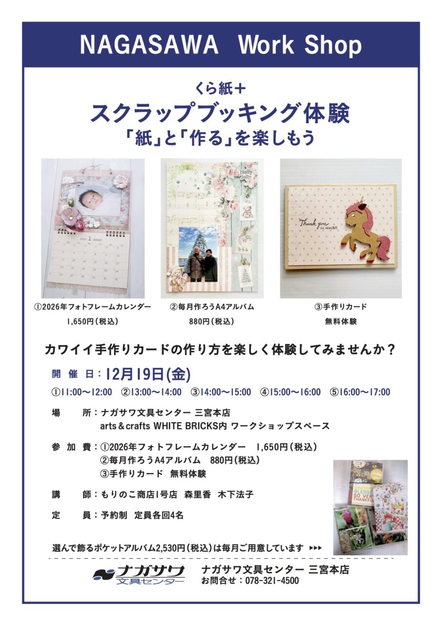 2025年12月19日(金)くら紙+ スクラップブッキング体験 「紙」と「作る」を楽しもうナガサワ文具センター 三宮本店