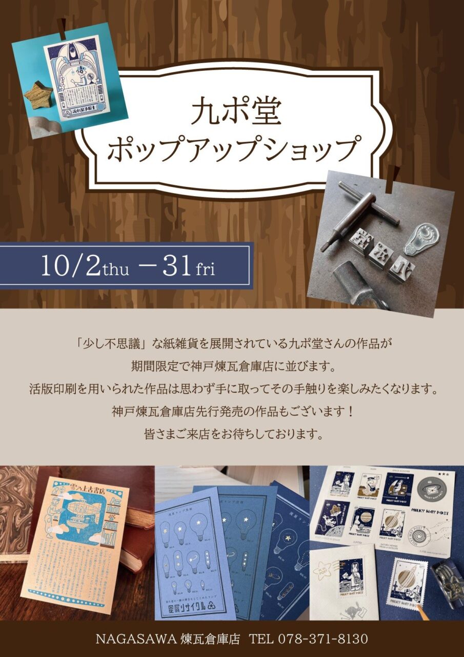10月2日~31日 神戸煉瓦倉庫店で九ポ堂さまポップアップショップを開催します。