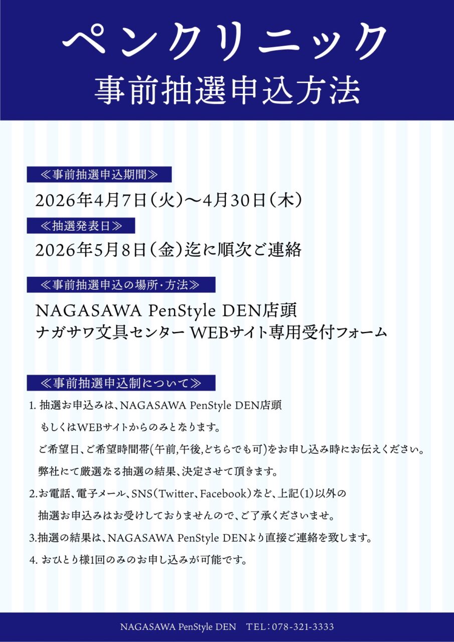 抽選の結果は、NAGASAWA PenStyle DENより直接ご連絡をいたします。