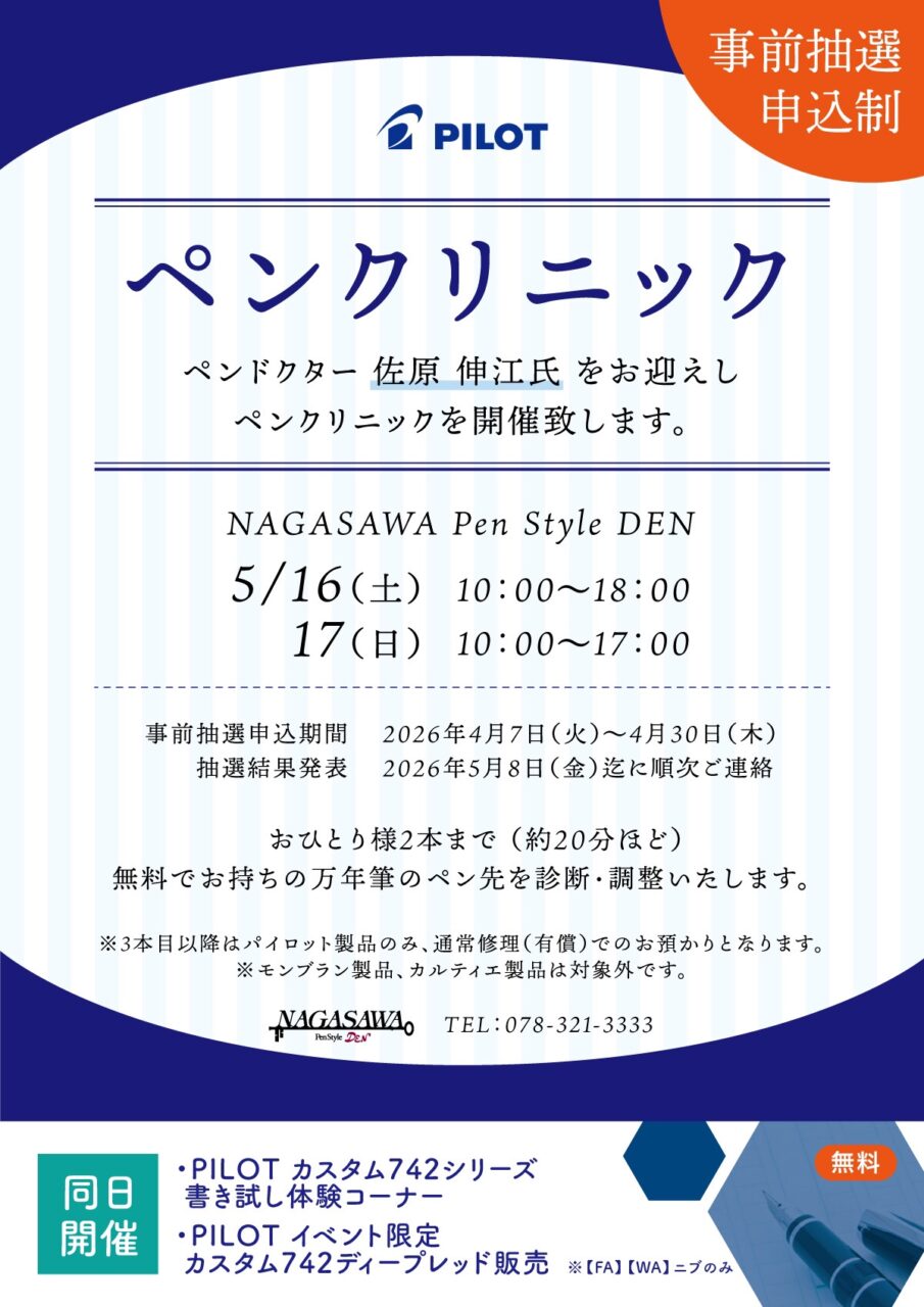 2026年5月16日(土)〜17日(日)PILOT ペンクリニックNAGASAWA PenStyle DEN