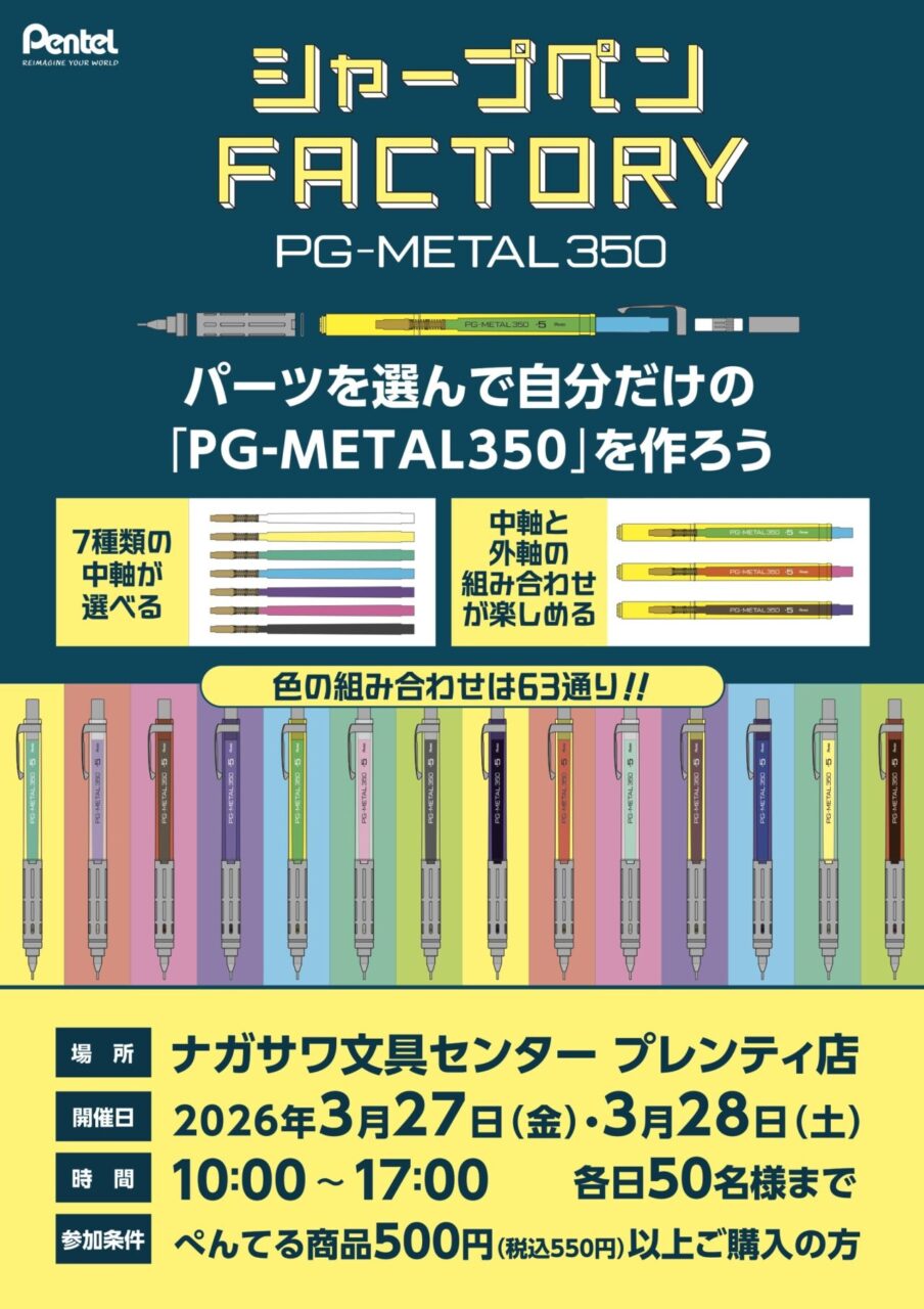 人気シャープペンシル「PG-METAL350」を自分の好きな配色で1本組み上げるイベントです。