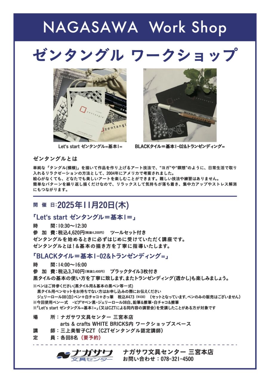 2025年11月20日(木)ゼンタングル ワークショップナガサワ文具センター 三宮本店