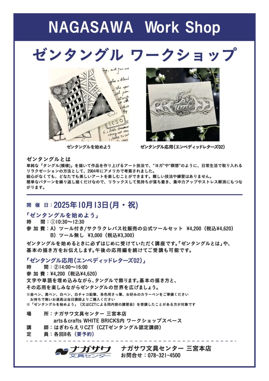 2025年11月20日(木)ゼンタングル ワークショップナガサワ文具センター 三宮本店