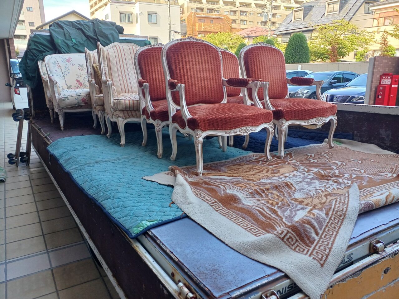 因みにイス生地の張り替えはお客様の要望で現地貼り替えと工房張り替えのどちらかを選びます。