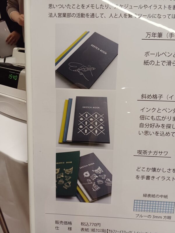 ちなみに去年は僕たち営業たちでブースを出店して、オリジナルの測量野帳の販売もいたしました。これが人気過ぎて・・・。