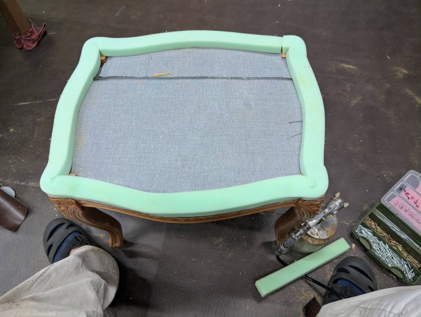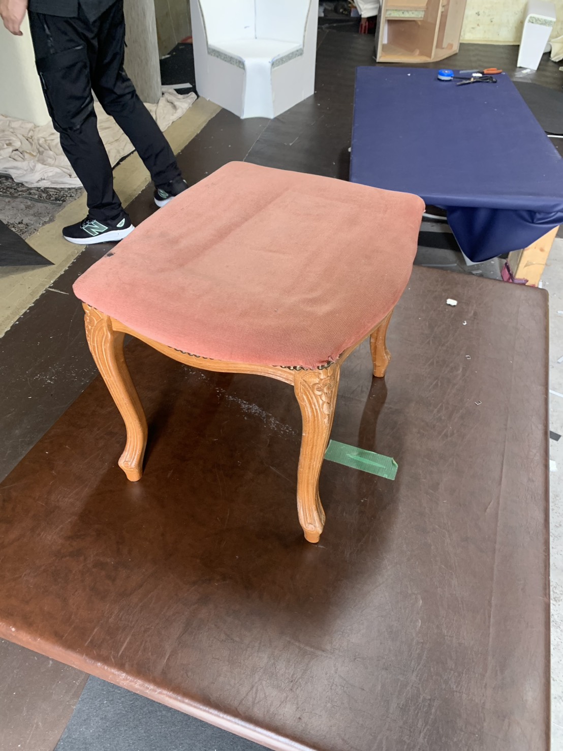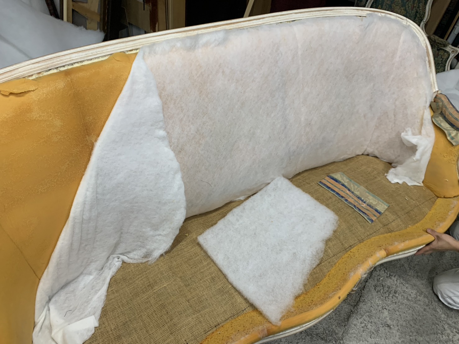 選ばれた生地が柄付きのものだったので、柄の位置をそれぞれで揃えたり、背と座の柄の組み合わせをそろえたりが大変だったそうです。
