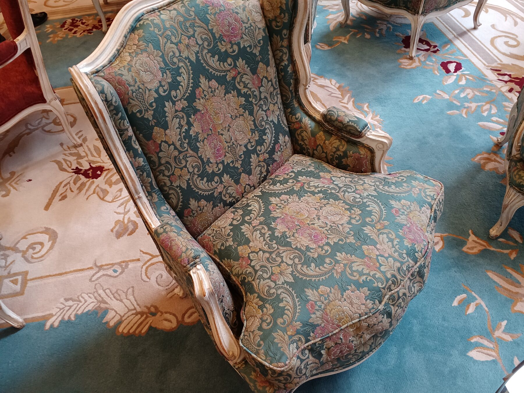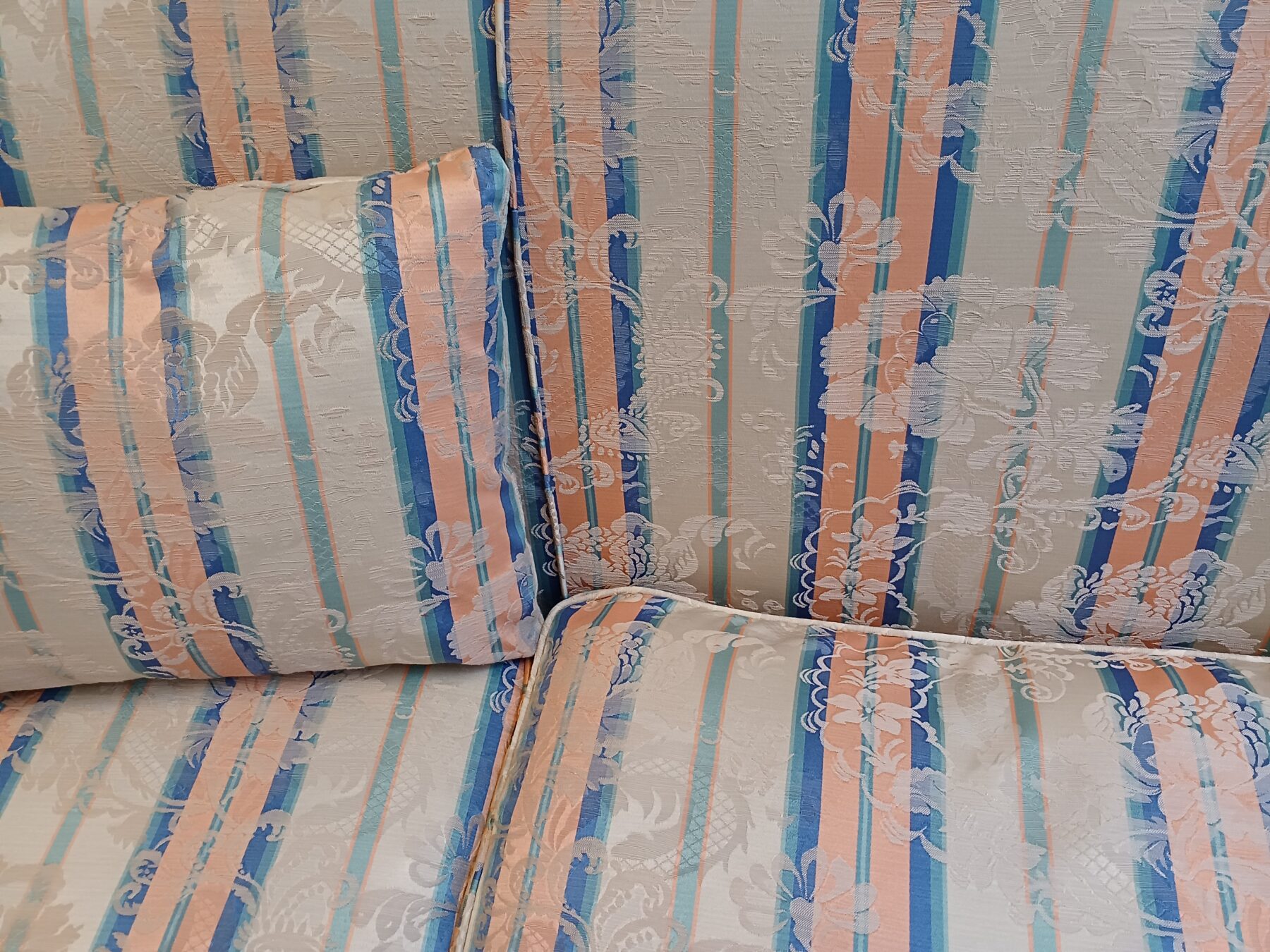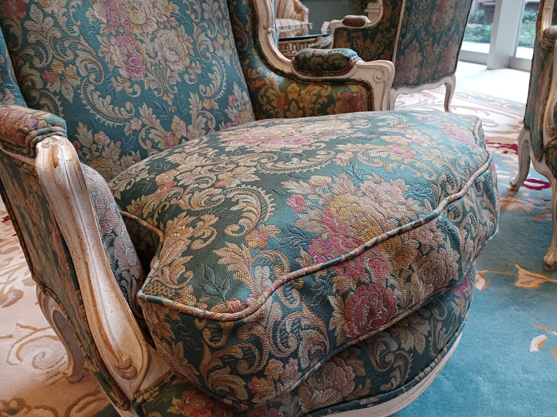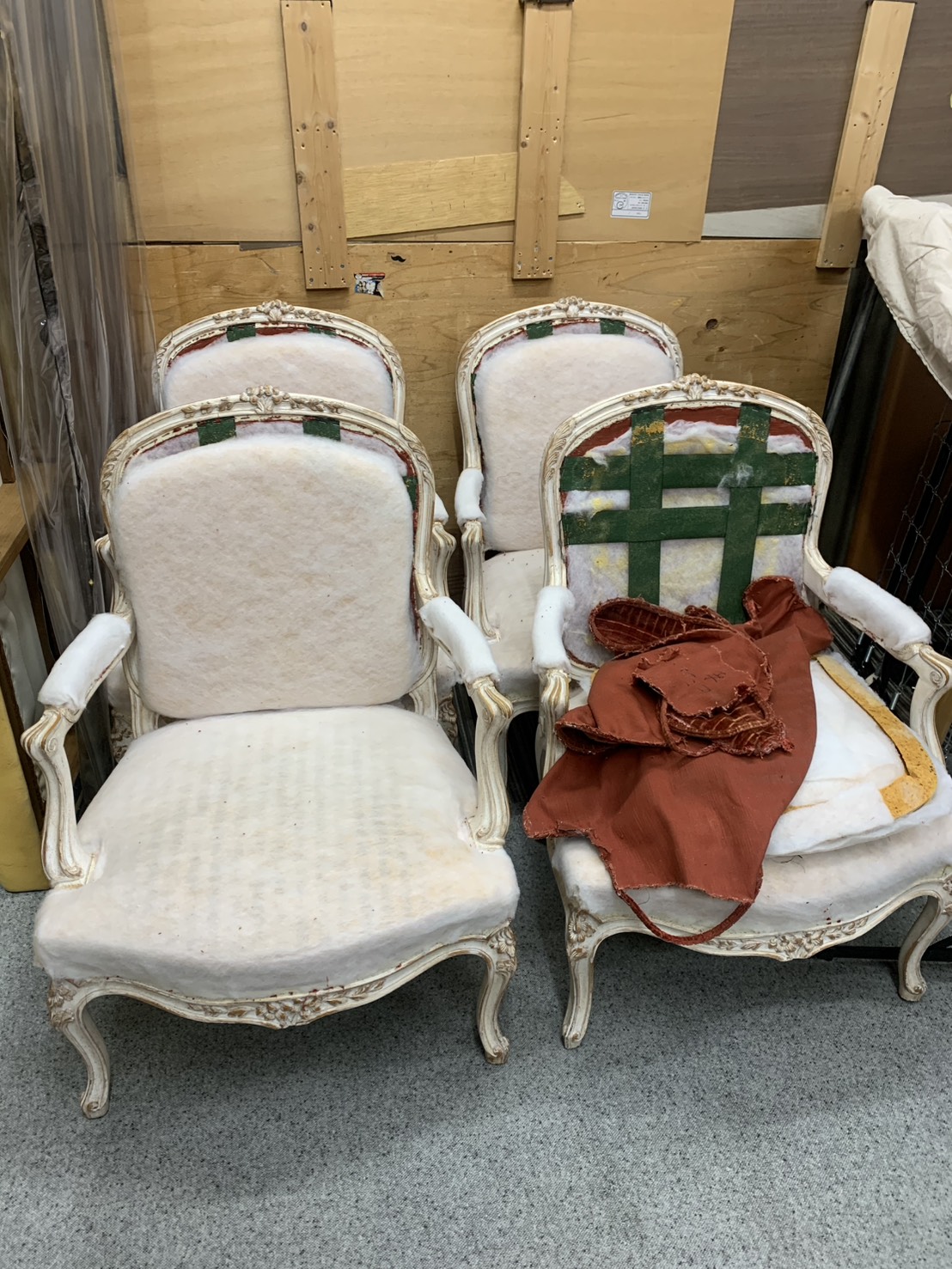 選ばれた生地が柄付きのものだったので、柄の位置をそれぞれで揃えたり、背と座の柄の組み合わせをそろえたりが大変だったそうです。