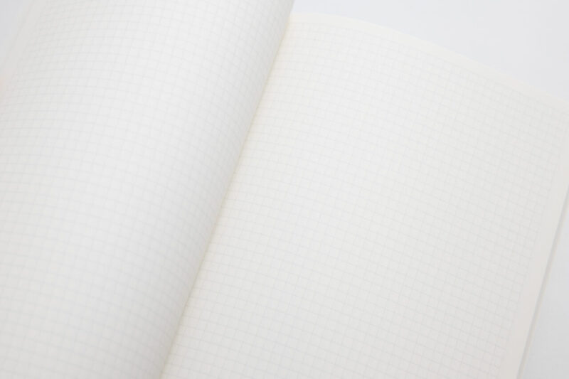 罫線にはクリエイティブな使用に耐えられるように最もバランスの良い4mm方眼をライトグレーで表現、表紙のカラ―インク見本とのバランスを考えて仕上げています。