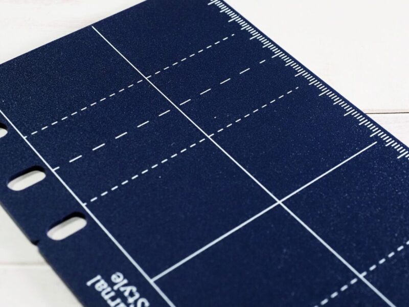 筆記のサポートをはじめ、印鑑マット、定規などの機能まで備えた、マルチツールのような「下敷きリフィル Grid」は、バイブルサイズのシステム手帳をお使いのすべての方に、届けたいリフィルです。